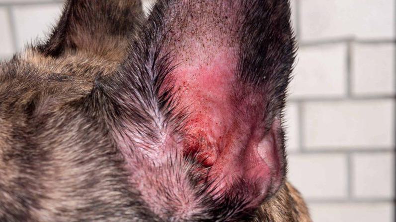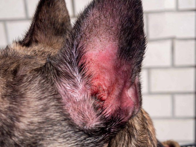 The most obvious symptom is visible pain when you touch your dog’s ear.