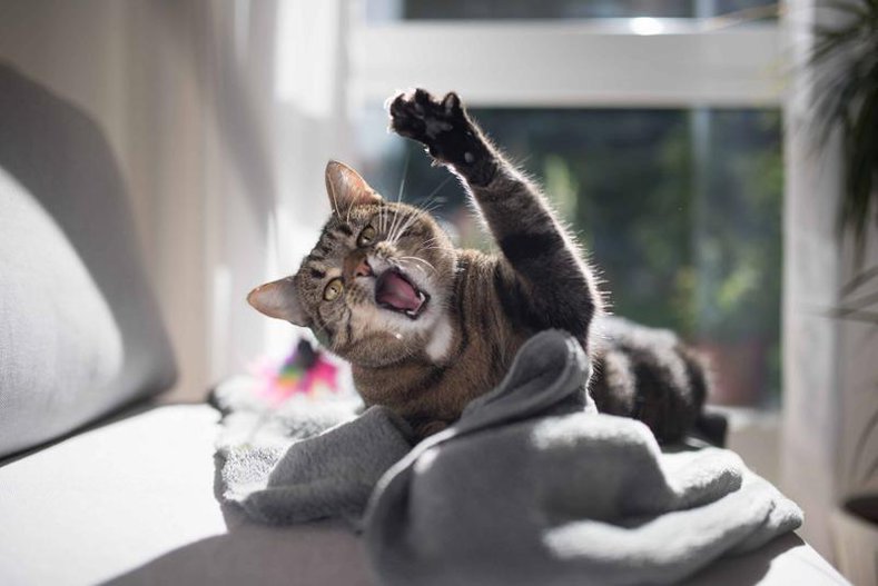 - Be mindful that your cat is unaware of thrashing around wildly. You could get scratched or bitten if you don’t approach with care. Keep children away too.